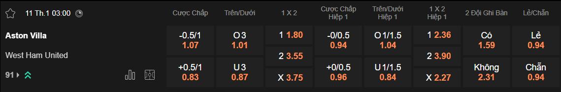 Trong kèo châu Á hôm nay, Aston Villa đang ở cửa trên và nhận mức chấp là 3/4. Với những gì đang có, chủ nhà hoàn toàn đủ sức tạo ra thế trận tốt trước đối thủ. Cần biết rằng, thành tích đá sân khách của West Ham hết sức kém cỏi với chỉ 2 chiến thắng giành được sau tổng cộng 11 trận đã chơi kể từ đầu mùa. Trong 4 lần gần nhất 2 đội chạm trán nhau, The Villa bất bại.