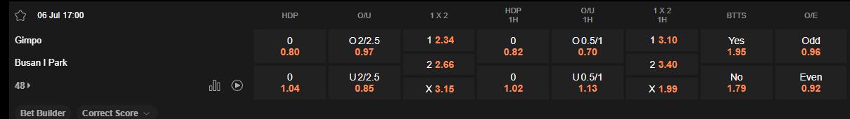 Soi kèo hiệp 1 Gimpo vs Busan