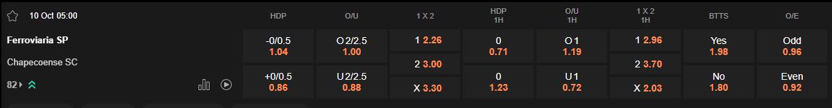 Soi kèo hiệp 1 Ferroviaria vs Chapecoense