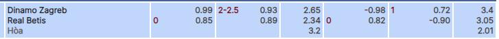 Soi kèo Châu Á Dinamo Zagreb vs Betis