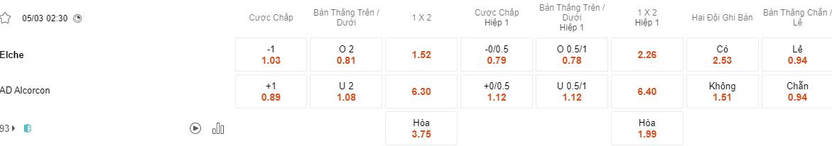 Soi kèo hiệp 1 Elche vs Alcorcon