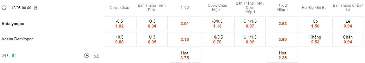 Trong 5 trận gần nhất, Antalyaspor chỉ ghi được 1 bàn trong hiệp 1. Qua đó thể hiện sự khó khăn trong việc tấn công từ đầu trận. Mặc dù gặp khó khăn trong việc ghi bàn gần đây, nhưng Adana Demirspor đã chứng tỏ khả năng thi đấu tốt ở hiệp 1. Cửa cược của họ đã giúp bet thủ vượt ải thành công trong 3 lần mở kèo hiệp 1 trên sân khách gần đây.