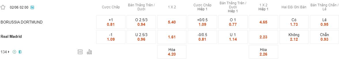 Soi kèo hiệp 1 Dortmund vs Real Madrid