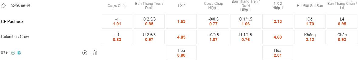 Columbus Crew đã thể hiện sự tự tin và sức mạnh khi thi đấu trên sân khách khi giành được 4 chiến thắng liên tiếp ngoài sân Lower.com Field. Cửa cược của họ đã giúp bet thủ vượt ải thành công trong 2 lần mở kèo gần đây. Trong khi đó, Pachuca cũng sẽ phải đối mặt với sức ép từ người hâm mộ và áp lực của trận chung kết. Tỷ lệ thắng kèo hiệp 1 của họ chỉ vỏn vẹn 20% trong 10 lần mở kèo trên sân nhà gần nhất.