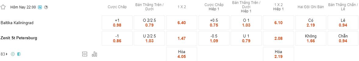 Zenit có lợi thế rõ ràng trong các trận đối đầu gần đây với Baltika. Họ đã thắng 4 trong 5 lần gặp nhau gần nhất, trong đó có chiến thắng 1-0 gần đây vào tháng 4 tại giải Ngoại hạng Nga. Điều này cho thấy sự vượt trội của Zenit so với Baltika trong các cuộc chạm trán trực tiếp. Zenit được đánh giá cao hơn với sự chênh lệch về đẳng cấp và phong độ. Họ có hàng công mạnh mẽ với những cầu thủ chất lượng và lối chơi hiệu quả.