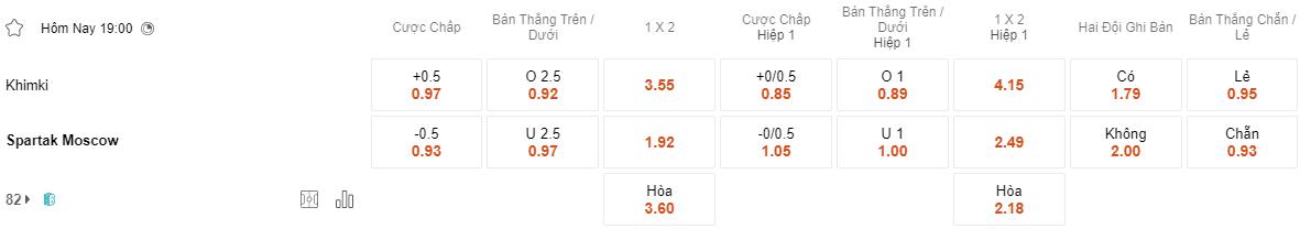 Soi kèo hiệp 1 Khimki vs Spartak Moscow