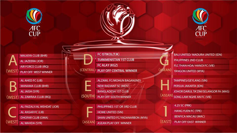 Từ năm 2017, thể thức của AFC Cup là gì đã trải qua những sự điều chỉnh với mục tiêu hạn chế việc di chuyển giữa các địa điểm thi đấu. Đến nay, giải đấu này có sự tham gia của 36 câu lạc bộ, được chia thành 9 bảng (4 đội/bảng) theo cách phân bố sau: