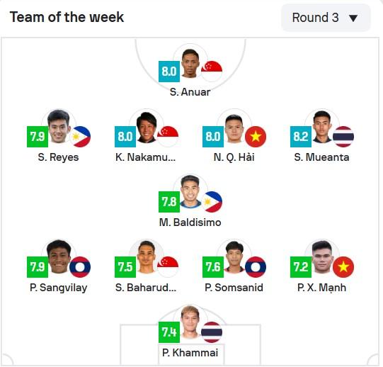 Ngoài Quang Hải, hậu vệ Xuân Mạnh cũng góp mặt trong đội hình tiêu biểu của lượt trận này. Điều này cho thấy sự đồng đều và chất lượng của đội tuyển Việt Nam.