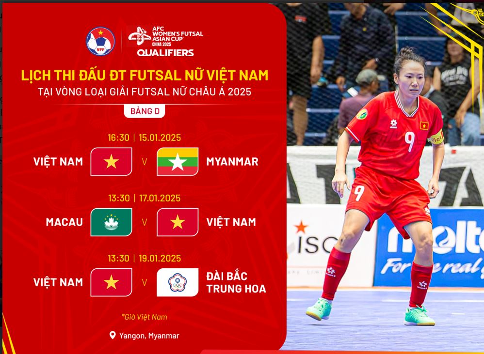 Tháng 1 năm 2025, đội tuyển sẽ bước vào vòng loại futsal nữ châu Á. Bảng đấu của đội khá thuận lợi khi chỉ phải đối đầu với các đối thủ như Đài Bắc Trung Hoa, Macau và Myanmar. Tuy nhiên, vòng chung kết sẽ là một thử thách lớn khi phải cạnh tranh với những đối thủ mạnh như Nhật Bản, Iran và Thái Lan.