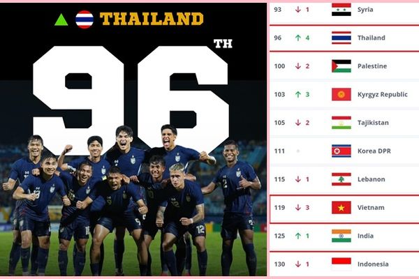 Với chiến thắng thuyết phục tại King’s Cup, đội tuyển Thái Lan đã có một bước nhảy vọt trên bảng xếp hạng FIFA. Việc tăng 4 bậc lên vị trí thứ 96 không chỉ giúp “Voi chiến” thiết lập một cột mốc mới trong lịch sử bóng đá nước nhà mà còn khẳng định vị thế số một Đông Nam Á.