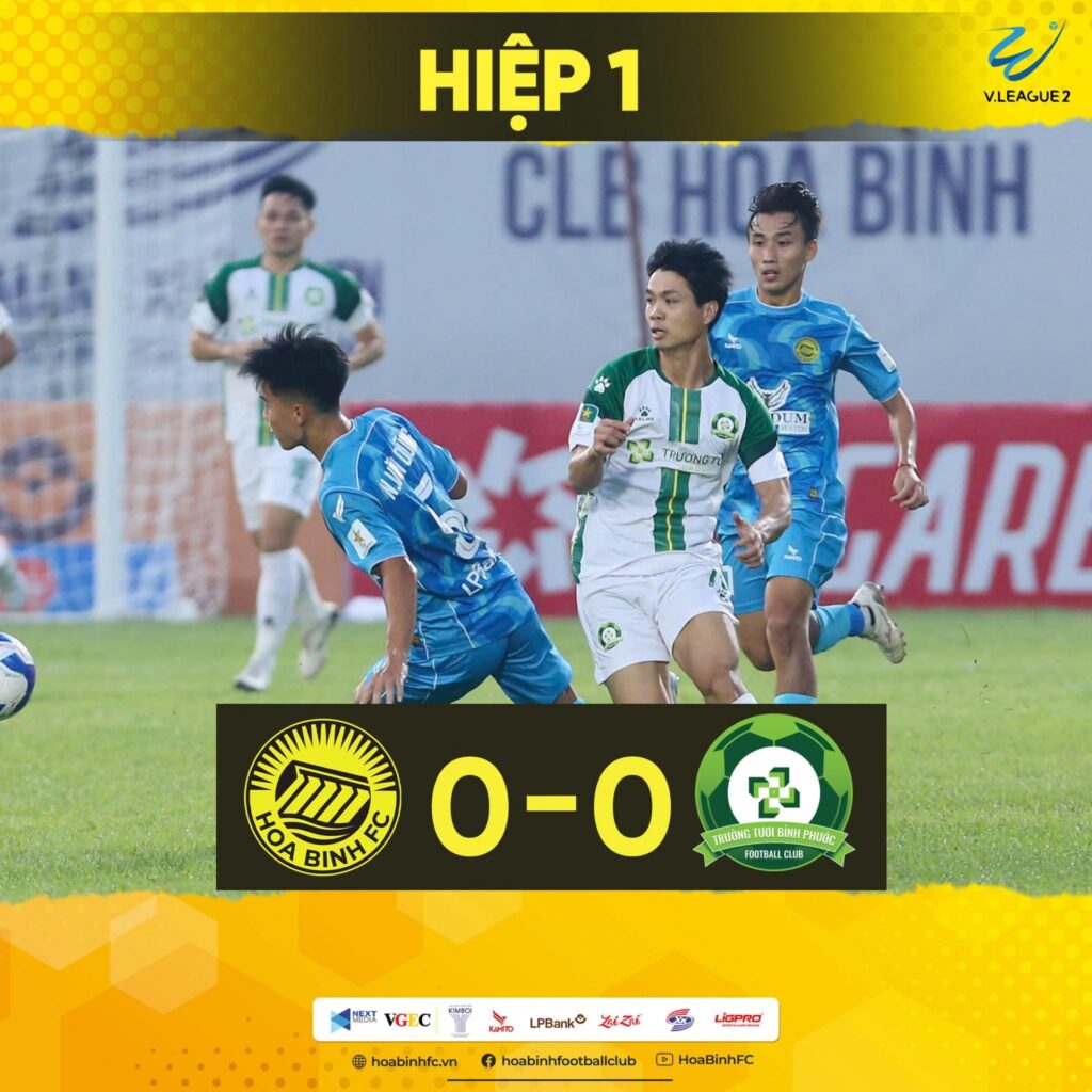 Trong khi đó, Hòa Bình cũng có những cơ hội của riêng mình. Phút 28, Tấn Sinh đã có pha đánh đầu rất nguy hiểm, nhưng thủ môn của Bình Phước đã kịp thời cứu thua.