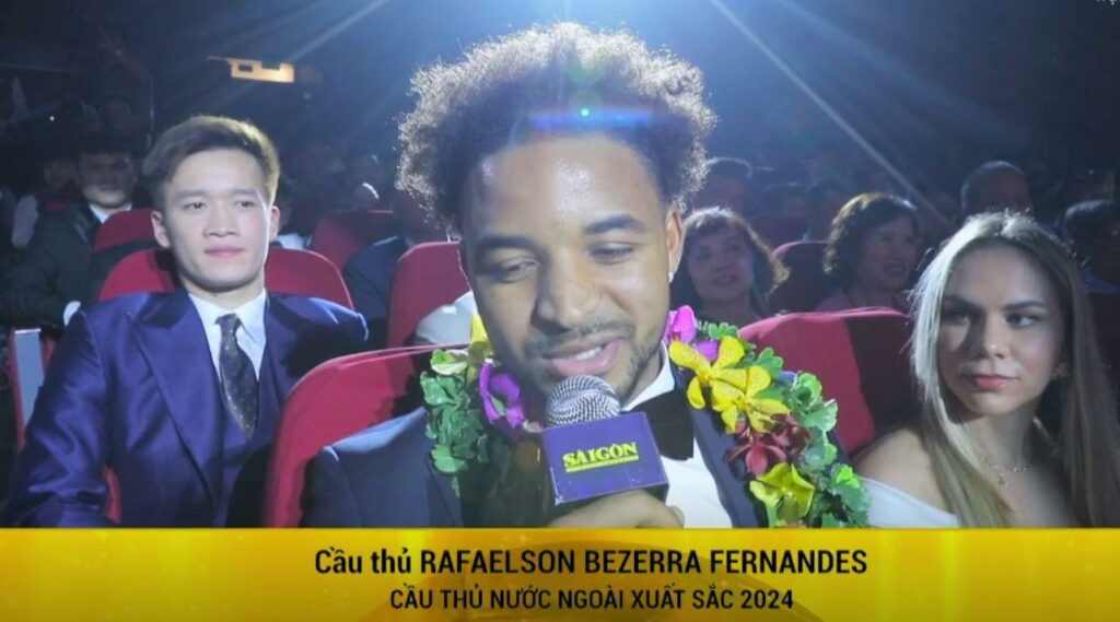 Nguyễn Xuân Son, tên khai sinh là Rafaelson, tiếp tục khẳng định đẳng cấp khi giành danh hiệu Cầu thủ nước ngoài xuất sắc nhất năm 2024 tại lễ trao giải Quả bóng Vàng Việt Nam diễn ra vào tối 26/2. Đây là năm thứ hai liên tiếp tiền đạo gốc Brazil nhận được giải thưởng này, ghi dấu một mùa giải rực rỡ trong màu áo CLB Nam Định và Đội tuyển Việt Nam.