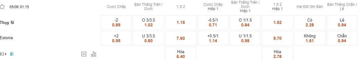Soi kèo hiệp 1 Thụy Sĩ vs Estonia