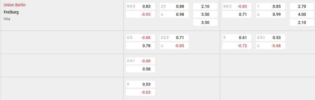 Soi kèo Châu Á Union Berlin vs Freiburg