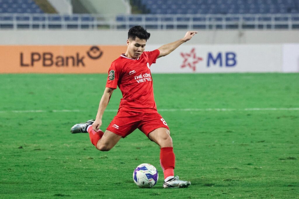 Bàn thắng ở phút 20 là minh chứng rõ nét cho khả năng xử lý khéo léo và tư duy chiến thuật của Tiến Anh. Sau tình huống bóng bật ra, hậu vệ của Viettel bất ngờ đẩy bóng sang chân trái để đánh lừa đối phương rồi tung cú dứt điểm hiểm hóc, bóng đập cột dọc và lăn vào lưới, không cho thủ thành Filip Nguyễn bất kỳ cơ hội cản phá nào. Khoảnh khắc tỏa sáng đó khiến máy quay lập tức hướng về khán đài, nơi HLV trưởng ĐT Việt Nam Kim Sang Sik theo dõi. Phản ứng của nhà cầm quân người Hàn Quốc cho thấy ông thực sự ấn tượng với màn trình diễn của hậu vệ 26 tuổi này.
