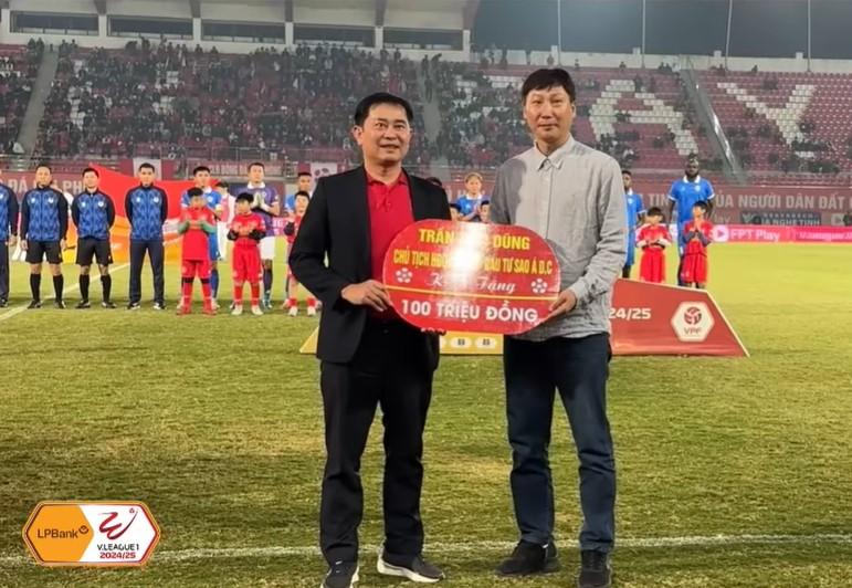 Một trong những điểm nhấn đáng chú ý trong hành trình khảo sát của HLV Kim Sang Sik diễn ra vào ngày 19/1 vừa qua. Trong trận đấu giữa Hải Phòng và Quảng Nam trên sân Lạch Tray, vị thuyền trưởng đội tuyển Việt Nam đã nhận được một phần thưởng đặc biệt trị giá 100 triệu đồng từ một doanh nghiệp địa phương.