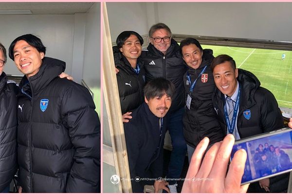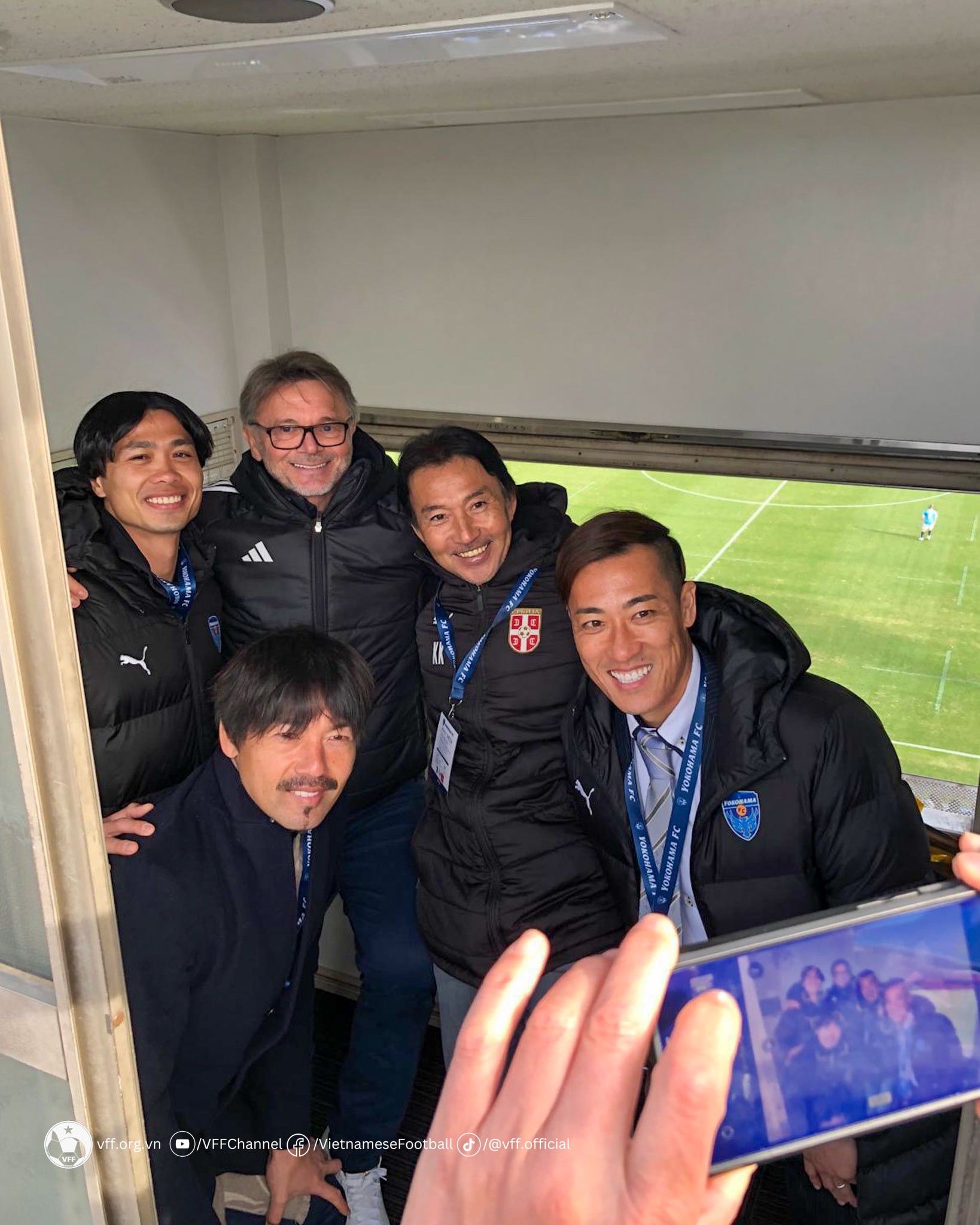 HLV Troussier chụp hình cùng Công Phượng và các thành viên Yokohama