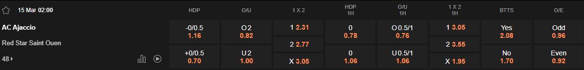 Soi kèo châu Á Ajaccio vs Red Star