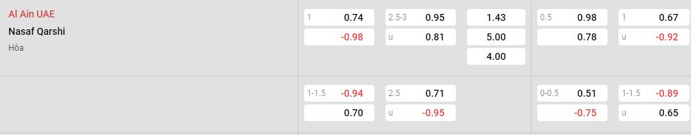 Soi kèo Châu Á Al Ain vs Nasaf