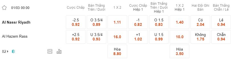 Soi kèo châu Á Al Nassr vs Al Hazem