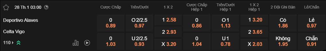 Soi kèo Alaves vs Celta Vigo ngày 28/1