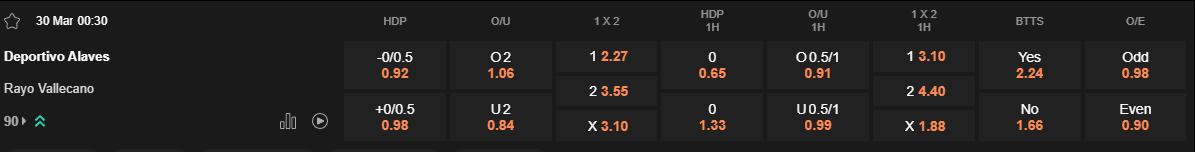 Soi kèo hiệp 1 Alaves vs Vallecano