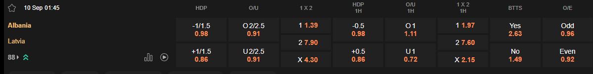 Soi kèo hiệp 1 Albania vs Latvia