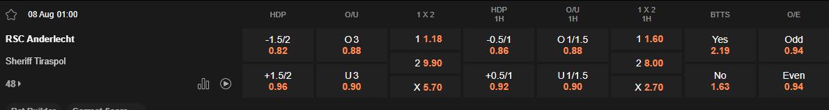 Với lợi thế sân nhà và phong độ lên cao, Anderlecht được kỳ vọng sẽ nhập cuộc chủ động và tìm cách giải quyết trận đấu từ sớm. Ở 5/6 trận gần nhất, đội bóng Bỉ đều có bàn mở tỷ số trong hiệp 1. Thống kê cho thấy sự sẵn sàng dâng cao và áp đặt thế trận của đội bóng này. Sheriff với tâm lý thi đấu yếu trên sân khách rất dễ bị cuốn theo lối chơi của đối phương. Nếu để mất quyền kiểm soát bóng và liên tục chịu sức ép, việc họ để thủng lưới ngay trong 45 phút đầu tiên là điều không khó xảy ra.