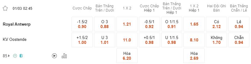 Soi kèo hiệp 1 Antwerp vs Oostende