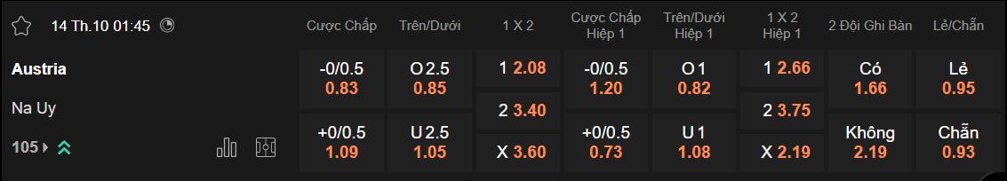 Theo tỷ lệ kèo nhà cái châu Á hôm nay, Áo đang ở cửa trên và nhận mức chấp là 1/4. Như vậy, chủ nhà cần phải giành chiến thắng để giúp các nhà đầu tư có lợi nhuận. Với phong độ hiện tại của đội khách, họ khó lòng tạo nên thế trận áp đảo. Sự gắn kết sẽ giúp Na Uy đứng vững trước đối thủ và có thể mang về ít nhất 1 điểm. Đầu tư vào đội khách là phương án hợp lý hơn.