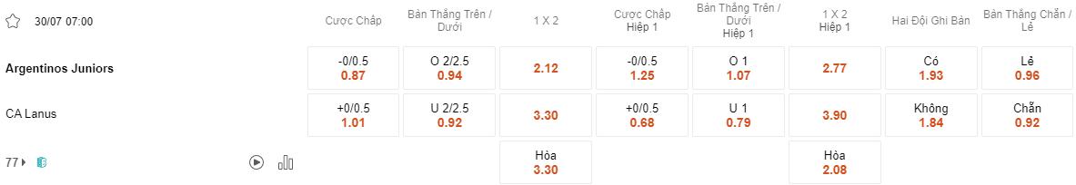 Soi kèo châu Á Argentinos Juniors vs Lanus