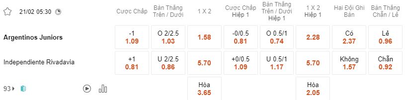 Soi kèo hiệp 1 Argentinos Juniors vs Rivadavia