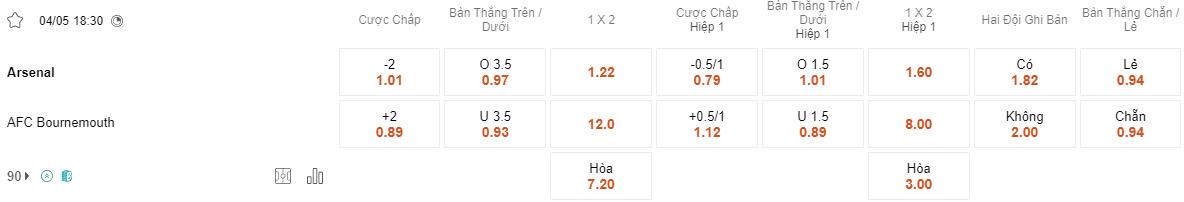 Tỷ lệ kèo Arsenal vs Bournemouth