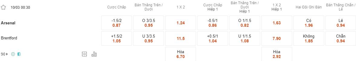 Soi kèo hiệp 1 Arsenal vs Brentford