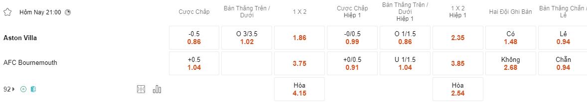 Soi kèo hiệp 1 Aston Villa vs Bournemouth