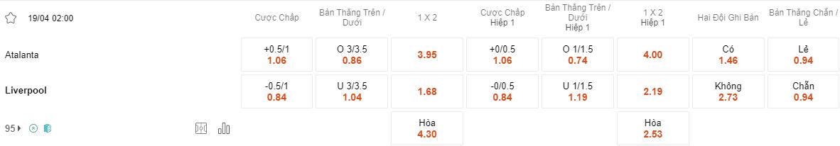 Soi kèo châu Á Atalanta vs Liverpool
