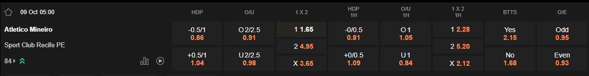 Tỷ lệ kèo Atletico Mineiro vs Sport Recife