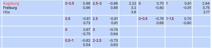 Trong khi Augsburg cũng đang có phong độ thi đấu thiếu ấn tượng trong thời gian gần đây. Theo thống kê cho thấy, sau 4 trận ra quân gần nhất, họ đều không thắng. Do vậy, được chơi trên sân nhà, tuy nhiên, phải tiếp đón các vị khách Freiburg, đây thực sự là một thử thách khó khăn. Do đó, các chuyên gia đang đánh giá cao Freiburg hơn trong trận kèo này.