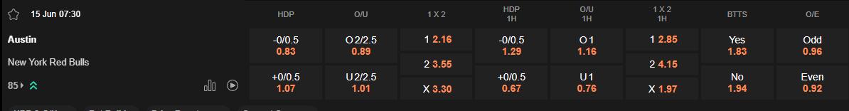 Tỷ lệ kèo Austin vs NewYork Red Bulls