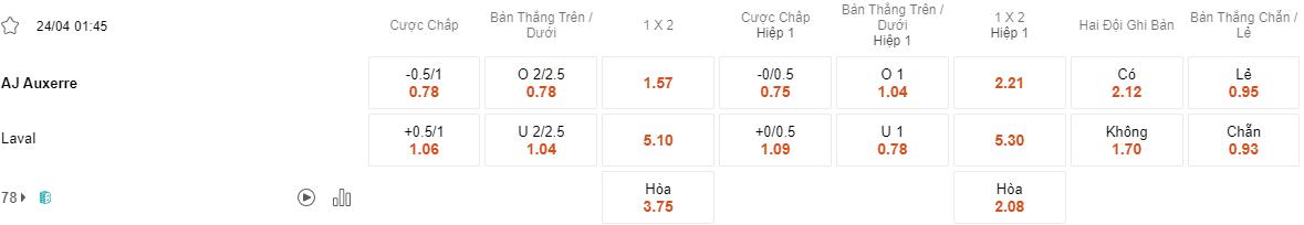 Soi kèo Auxerre vs Laval lúc 1h45 ngày 24/4/2024
