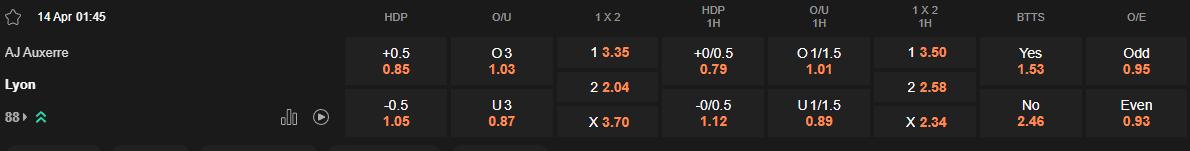 Soi kèo hiệp 1 Auxerre vs Lyon