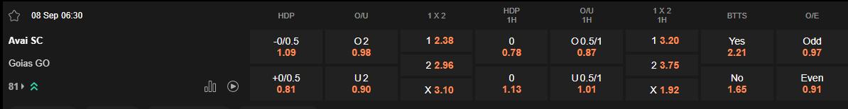 Sân nhà luôn là điểm tựa để Avai nhập cuộc hứng khởi. Trong nhiều trận đấu gần đây, họ thường tận dụng tối đa lợi thế khởi đầu để gây sức ép và có bàn thắng dẫn trước ngay trong hiệp 1. Sự chắc chắn trong khâu phòng ngự cũng giúp Avai tự tin giữ được thế trận cân bằng hoặc nhỉnh hơn trước giờ nghỉ. Goias lại có thói quen nhập cuộc khá chậm và thường để lộ sơ hở trong những phút đầu. Điều này thể hiện rõ qua việc họ bị đối thủ ghi bàn trong hiệp 1 ở ¾ trận gần đây. Khi phải đối đầu với một Avai có phong độ ổn định và tinh thần cao trên sân nhà, khả năng Goias tiếp tục bị dẫn bàn sớm là rất dễ xảy ra.