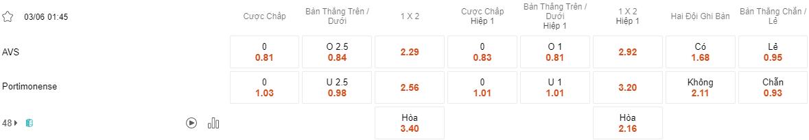 Portimonense đã có một mùa giải đáng thất vọng khi chỉ đứng thứ 16 tại giải quốc nội. Qua đó buộc họ phải tham gia trận playoff trụ hạng. Trong suốt mùa giải, đội bóng chỉ giành được 8 chiến thắng và đã trải qua một chuỗi trận không mấy khả quan gần đây. Trận lượt đi trên sân nhà Estadio Municipal de Portimao, Portimonense để thua 1-2 trước AVS dù chiếm ưu thế về kiểm soát bóng và có nhiều cơ hội ghi bàn. Cửa cược của họ cũng đã khiến bet thủ thua kèo trong 4/5 lần mở kèo gần đây.