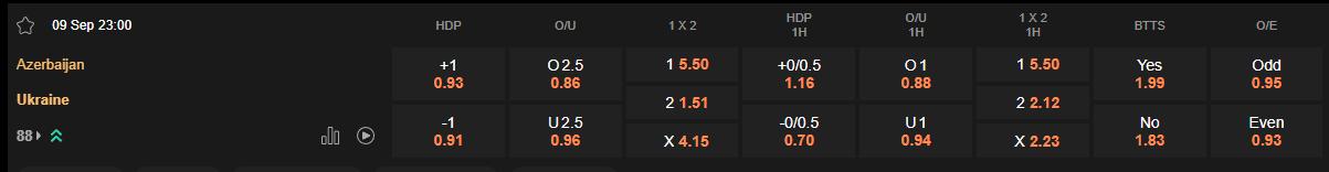Soi kèo hiệp 1 Azerbaijan vs Ukraine