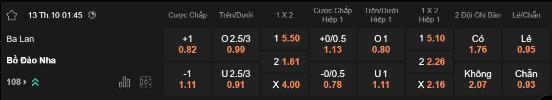 Soi kèo châu Á Ba Lan vs Bồ Đào Nha