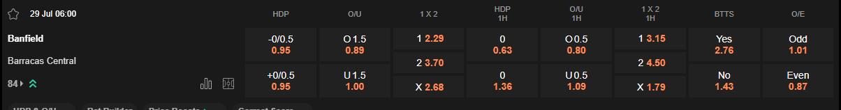 Banfield thường khởi đầu trận đấu rất tốt trên sân nhà. Trong 3/4 trận sân nhà gần nhất, họ đều có bàn mở tỷ số trong hiệp 1 và giữ vững lợi thế đến hết trận. Sự hiệu quả trong các pha dàn xếp cố định, cùng khả năng pressing sớm ở tuyến trên giúp họ gây áp lực và tạo ra khác biệt ngay trong 45 phút đầu tiên. Ngược lại, Barracas Central bị dẫn trước trong hiệp 1 ở 3/5 trận sân khách gần nhất, cho thấy khả năng nhập cuộc yếu kém và dễ bị bắt bài. Với sự tương phản rõ ràng về cách tiếp cận trận đấu, kịch bản Banfield dẫn trước sau hiệp 1 là rất khả thi.
