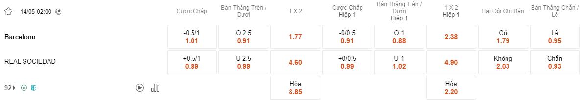 Barcelona có thành tích ấn tượng trong hiệp 1 ở những trận đấu gần đây. Họ thi đấu phòng ngự tấn công hiệu quả và tạo ra nhiều cơ hội nguy hiểm từ những pha tấn công sớm. Theo thống kê, cửa cược của họ đã giúp bet thủ vượt ải thành công trong 6/9 lần mở kèo hiệp 1 gần đây. Trong khi đó, Sociedad không có phong độ đủ chắc chắn trên mặt cỏ lạ và là lựa chọn khá mạo hiểm lúc này.