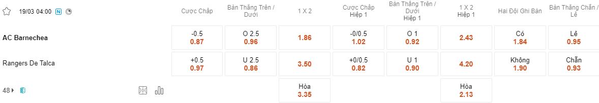 Soi kèo châu Á Barnechea vs Rangers Talca