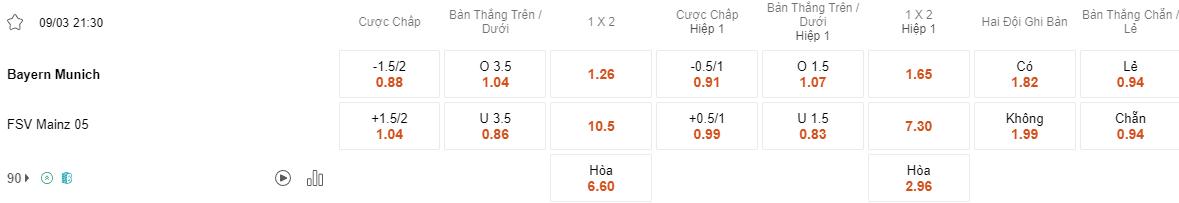 Trong khi đó, Mainz đang gặp khó khăn trong cuộc chiến trụ hạng. Mặc dù họ đã có một số dấu hiệu khả quan dưới thời tân HLV Bo Henriksen, nhưng việc giành điểm trước một đối thủ như Bayern Munich sẽ là một thách thức lớn đối với họ. Các vấn đề về phòng ngự là những điểm yếu mà Mainz cần cải thiện. Theo thống kê, cửa cược của họ đã khiến bet thủ ôm hận trong 6/8 lần mở kèo gần nhất.