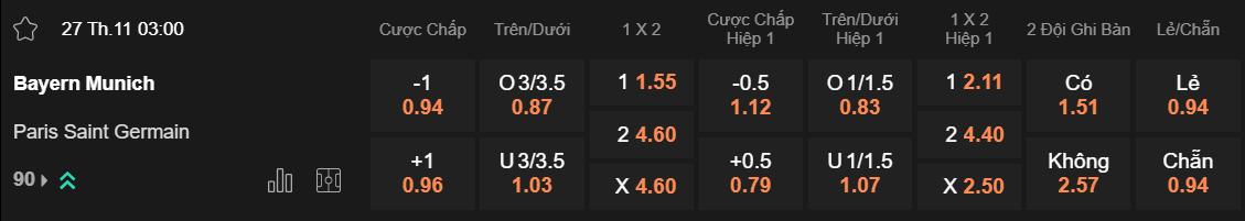 Soi kèo châu Á Bayern vs PSG